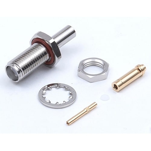 1×32AWG(7/0.08)D=1.32ケーブルに適合するSMAバルクヘッドジャックです。本体は黄銅にニッケルメッキ。コネクタとパネル間はIP67防水仕様となっております。 |
