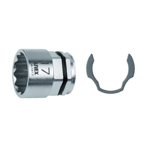 ソケット抜け防止のCリング付です。オフセットアダプターに装着して狭い所でのボルト・ナット回しに。