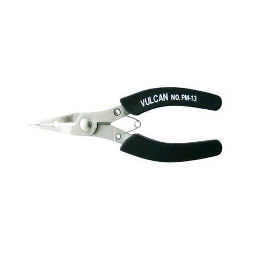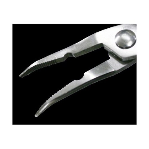 掴みやすく精密な加工が出来る先曲りプライヤー。精密な加工を目的に設計された。先曲りのベントノーズプライヤー。握りやすく疲れないグリップ構造。 |
