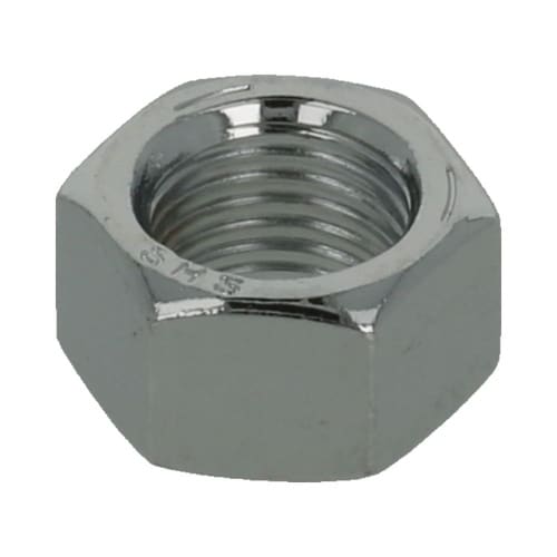 アメリカ規格(ユニファイ)の細目(UNF)ねじの六角ナットです。材質は鋼で耐食性向上のため、クロームめっき(白っぽく光沢のある)がしてあります。生地に比べ耐食性があります。
