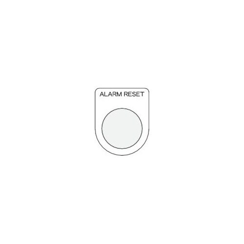 表示内容:ALARM RESET | 文字色:黒 | 縦(mm):50 | 横(mm):40 | 厚さ(mm):2 | 穴径(mm):30.5 | 書…