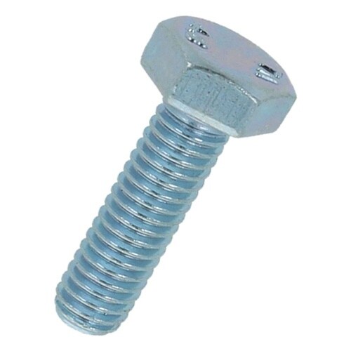 六角形状の頭部があり、胴の全体にねじが切ってあります。材質は鋼で耐食性向上のため、ユニクロめっき(薄青っぽい色合い)がしてあります。機械類の位置調整、締結用ねじです。生地に比べ耐食性があります。