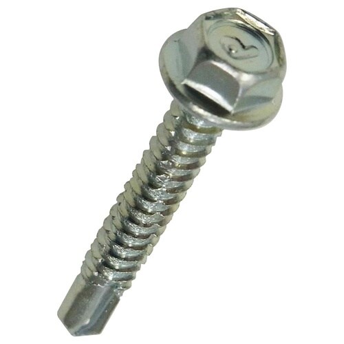 材質は鉄で三価クロメートめっき。六角で座付きのタッピンねじで先端が切り刃になっています。この切り刃で鉄板に下穴をあけ、連動してタップ立て、締付けまでがドリルねじ一本で出来ます。