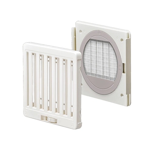 換気用レジスター角型フィルター付(内壁用樹脂製)直感で操作できるスライド開閉式。選べる3タイプのフィルター。 |