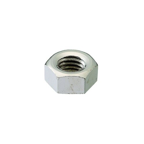 1種(片面取り)の一般的な六角ナットで、高さは呼び径の8割です。冷間圧造製品です。材質は鋼で耐食性向上のため、ニッケルめっき(白っぽい色合い)がしてあります。おねじに締付け、締結、固定に使用します。 |