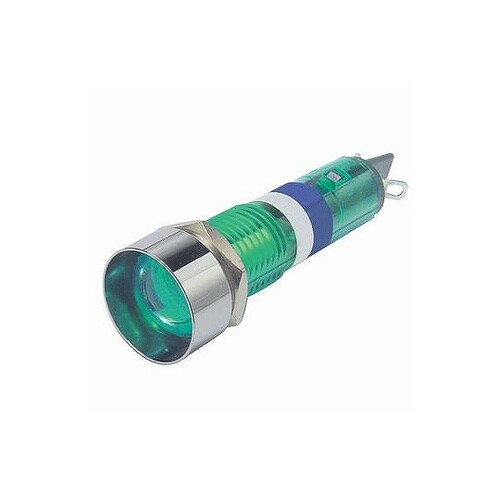レンズ色:緑 | レンズ形状:円筒(ドーム) | 表示部寸法:φ13 | 取付方式:ナット締付 | 定格:AC200Vー250V | 端子金具:ハンダ…