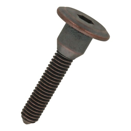 材質は鉄でブロンズめっき。さら状の頭部により、表面を保護し安定した角度が得られます。M6のオニメナットA,Eタイプと組み合わせ、特に高級木工家具の組み立てに使用します。