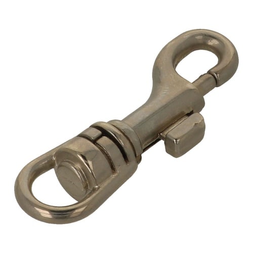 回転式。亜鉛ダイカスト製で、ニッケルめっき。 スナップ式になっているのでワンタッチで着脱ができる。チェーンの連結に使用。