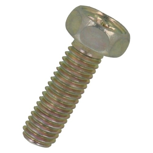 十字穴付きの六角頭ボルトです。締付け工具はメガネレンチ、十字ドライバーが適切です。スパナでの締付けはヘタリやすいので不適です。