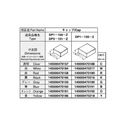 名称:カラーボタン、カラーキャップ | 適用機種:DP1−100−Z、DP3−101−Z | サイズ:長さ9.50mm×幅9.50mm×高さ4.00m…