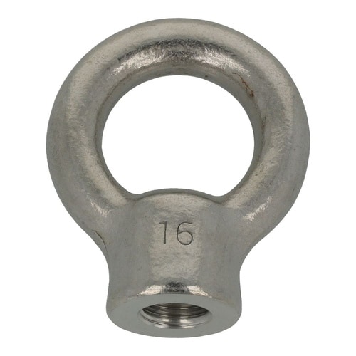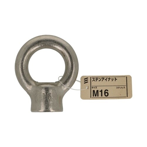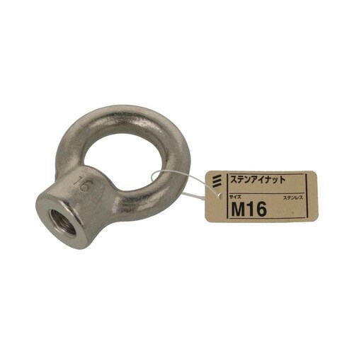 吊り下げ用のリングを持ったナットです。重量物の吊り上げに用います。ステンレス鋼(SUS304系)なので耐食性、耐熱性に優れています。モーター、配電盤、工作機械などの吊上げ時に使用。 |