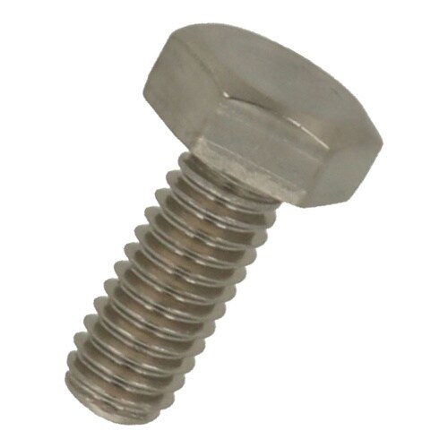 六角形状の頭部があり、胴の全体にねじが切ってあります。ステンレス鋼(SUS304系)なので耐食性、耐熱性に優れています。機械類の位置調整、締結用ねじです。