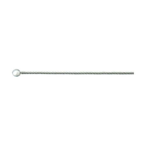 ステンレスワイヤロープの先端にステンレス球を取付け、逆側には環境にやさしいフリーハンダ(鉛を含有していない)でほつれ止め処理をしています。