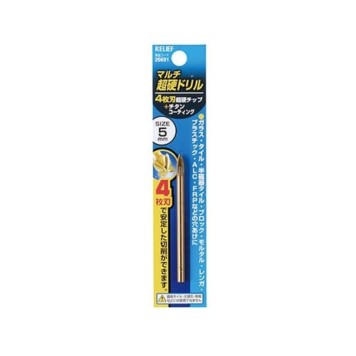 ガラス、タイル、半磁器タイル、ブロック、モルタル、レンガ、プラスチック、ALC,FRPなどの穴あけに使用できます。 |