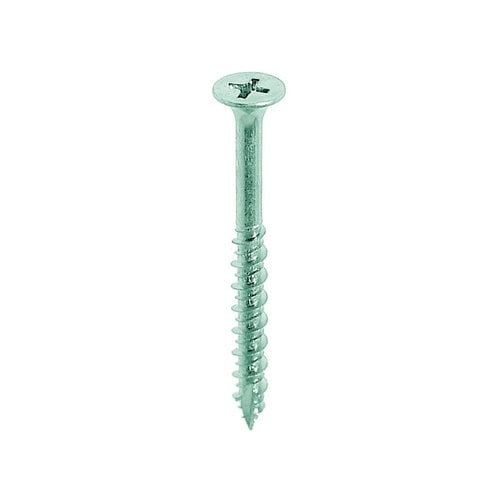 材質は鉄で三価クロメートめっき。電動ドライバーを使用でき、下穴が不要、二条ねじにより他の木用ねじに比べ母材に入っていくスピードが速い。ねじの先端が鋭いVカットになっており、木割れを防ぐ。