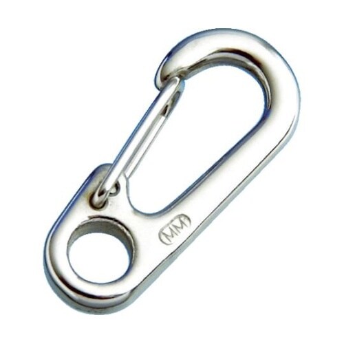 フック部とチェーン・ロープを入れる部分が分かれています。SUS316で、耐食性に優れます。産業機械関連、工具などの脱落防止用の補助金具として。 |