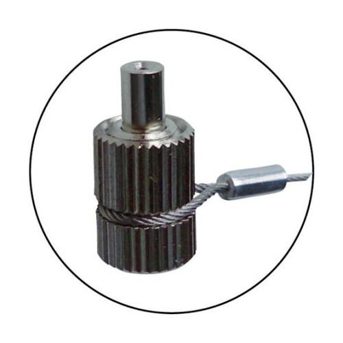 ワイヤロープを金具に差し込むだけで抜けません。かばんなどのファスナーに開き止めとしても使用できます。くり返し使用できます。 |
