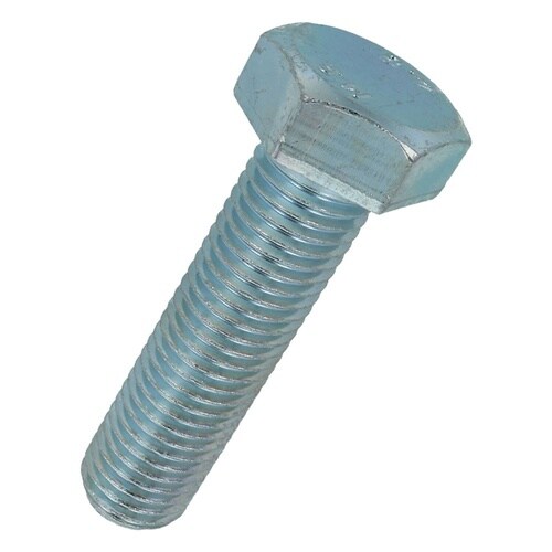 六角形状の頭部があり、胴の全体にねじが切ってあります。材質は鋼で耐食性向上のため、ユニクロめっき(薄青っぽい色合い)がしてあります。機械類の位置調整、締結用ねじです。生地に比べ耐食性があります。 |