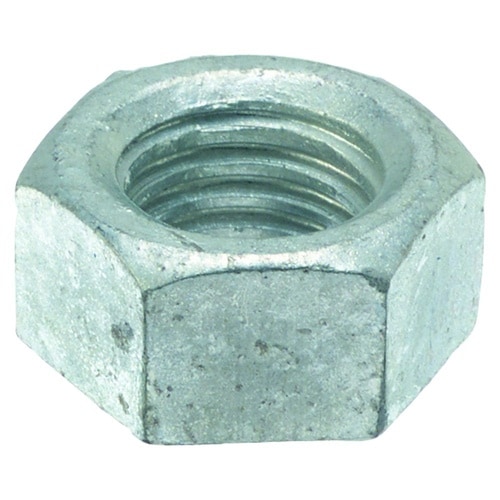 1種(片面取り)の一般的な六角ナットで、高さは呼び径の8割です。冷間圧造製品です。材質は鋼で耐食性向上のため、溶融亜鉛めっき(白っぽい色合い)がしてあります。おねじに締付け、締結、固定に使用します。
