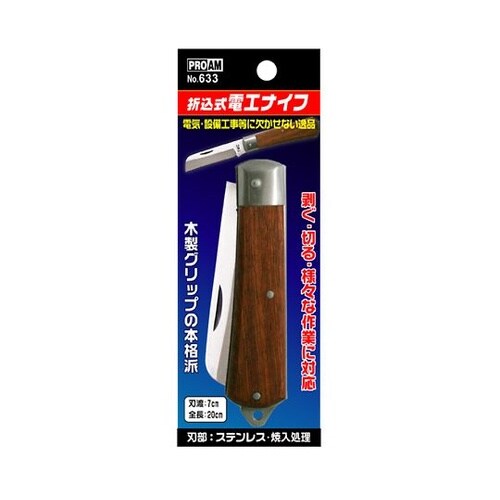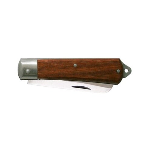 剥ぐ・切る等の様々な作業に使用出来る電工ナイフ。刃部は焼入処理のステンレス鋼を使用。握りやすい木製グリップの本格仕様。刃が折り畳めるので保管や携帯に適しています。 |