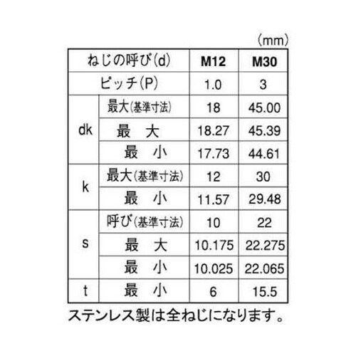 材質・仕上:ステンレス(303、304、XM7等) | 材質・仕上:表面処理/生地(または標準) | その他仕様:簡易包装(袋又は箱)となります。 |…
