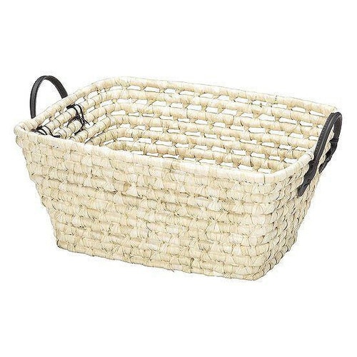 メイズ(トウモロコシ)の皮を編んであります。柔らかく、通気性が良いのでランドリーバスケットに最適。バスタオルなら、サイズや厚みなどによっても変わりますが、約5枚を収納することができます。 |