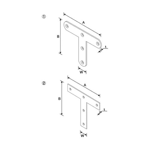 T字型のプレートタイプの補強金物です。サビに強いステンレス製です。連結や補強に。