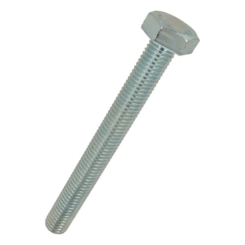 六角形状の頭部があり、胴の全体にねじが切ってあります。材質は鋼で耐食性向上のため、ユニクロめっき(薄青っぽい色合い)がしてあります。機械類の位置調整、締結用ねじです。生地に比べ耐食性があります。 |