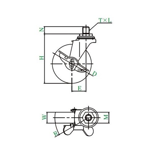 走行性、耐荷重を備えた一般的なねじ込み式キャスターです。旋回部の構造を二段構造にする事で、スムーズな旋回が可能になります。ストッパーにより車輪の回転をロックすることが出来ます。 |