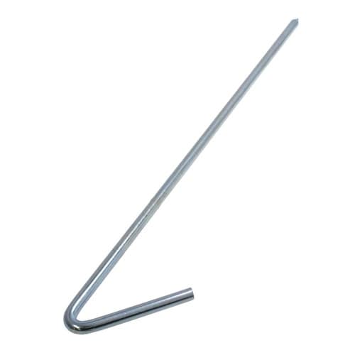 材質は鉄で、ユニクロめっき。サイズ=太さX全長(mm)。テントなどのポールを固定する為、ロープを張る時に使用。 |