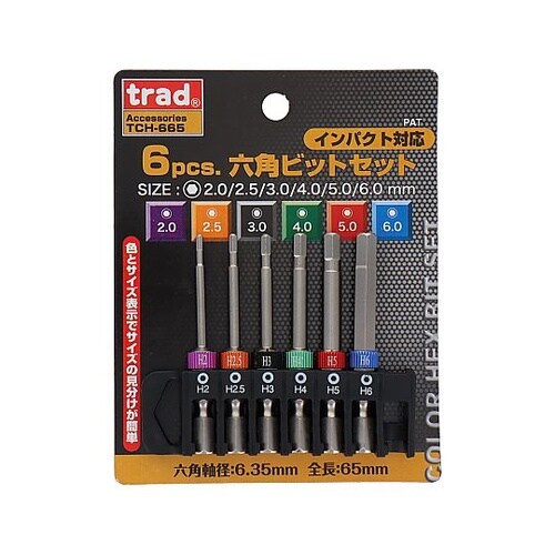 セット内容・65mm六角ビット 2.0・2.5・3.0・4.0・5.0・6.0