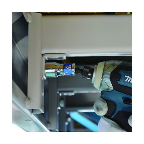 ソケット部を押し込むと固定し、引き出すと15°の角度で自在になります。面接触型12角でナットに差し込みやすいです。より狭い箇所のソケット作業に適した「首振りショート」ソケットです。