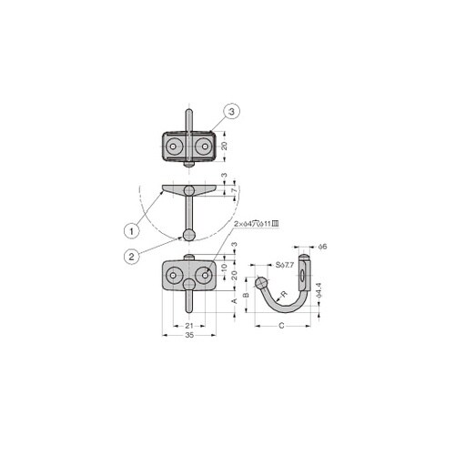 フック部が180°回転し、フリクション(抵抗機能)が振動による首振りを防止します。フック部先端が球状なので、安心してご使用いただけます。各種産業機器用。 |
