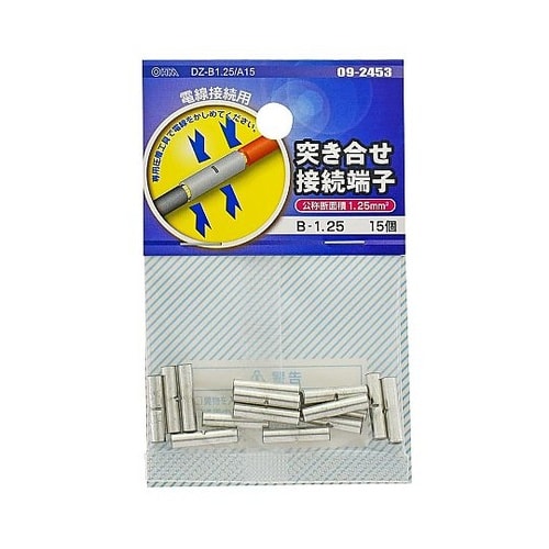 オーム電機 突き合せ接続端子 B−1.25 15個入 DZ−B1.25/A15 DZ−B1.25/A15 1パック A06V-6321