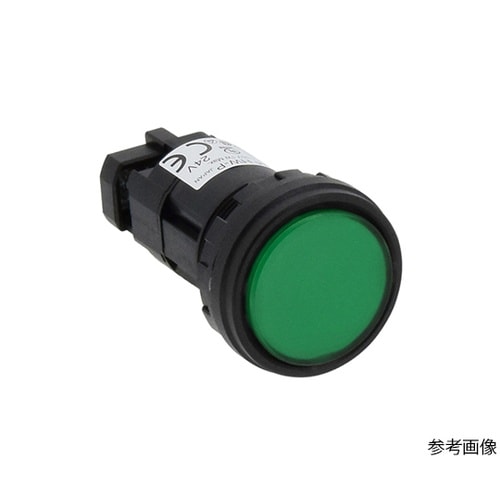 取付穴寸法・取付形状:φ22 | 照光部形状:丸形 | レンズ部形状:平形 | 照光部定格電圧:AC・DC6V | ボタン色・照光色:緑(G) | 端…