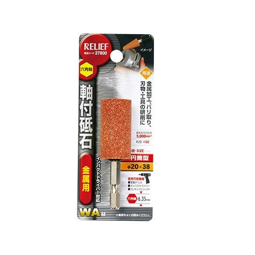 イチネンミツトモ 六角軸 軸付砥石 金属用(WA) 円筒型 φ20×38mm 27800 27800 1個 A06V-8086