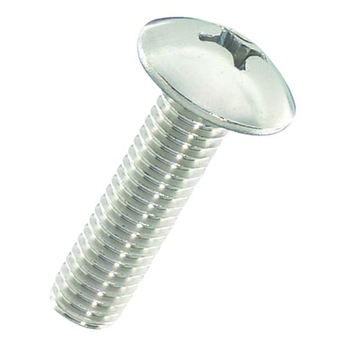 十字穴付きのトラス頭小ねじ。頭部が出ても差し支えない所に使われます。座面が大きいので、座面陥没を防止する効果有り。ステンレス鋼(SUS XM7)なので耐食性、耐熱性に優れる。