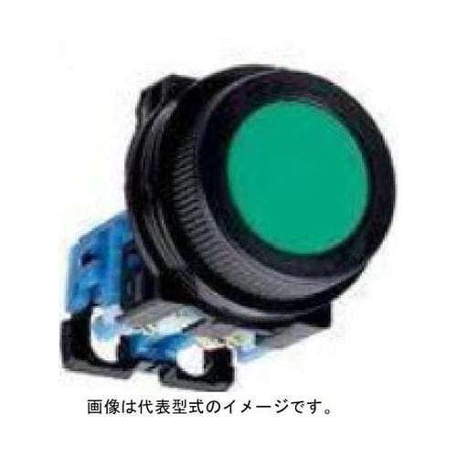 取付方法:φ30.5mm | フレーム:丸フレーム | 機種:平形(φ24) | 接点構成:1a | 復帰方式:モメンタリ | ボタン色:緑 | その…