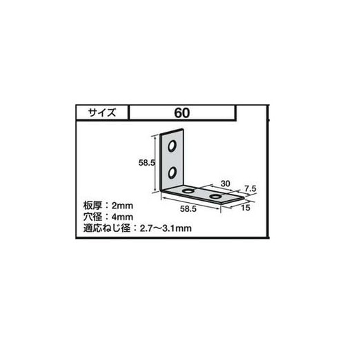 サイズ:60 | 板厚:2mm | 穴径:4mm | 適応ねじ径:2.7ー3.1mm | 単位:1個