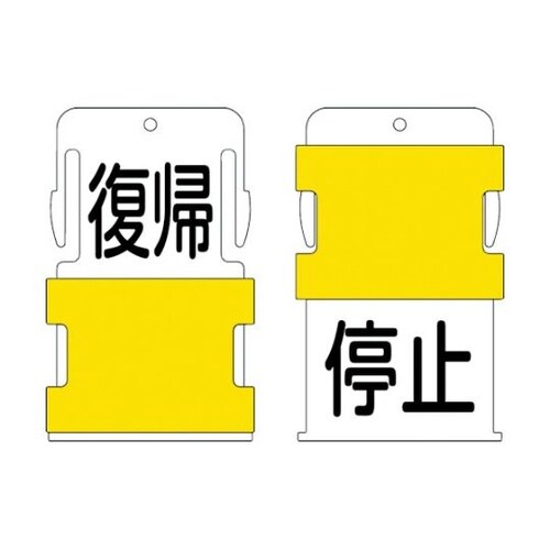 表示内容:復帰停止(復帰−黒文字・停止−黒文字) | 縦(mm):80 | 横(mm):50 | 厚さ(mm):7 | その他仕様:上部穴(3mm)1…
