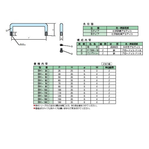 タカチ電機工業 BH型アルミ丸棒取手(2本1組) BH80S BH80S 1組 A06W-0988