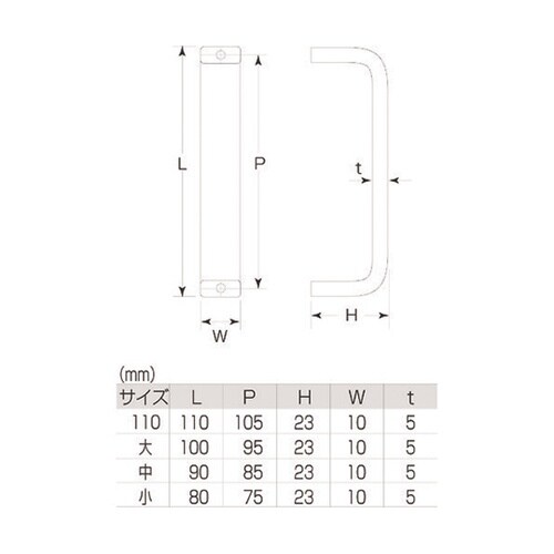 ステンレス製で耐食性に優れています。家具、機械設備などの取手として。 |