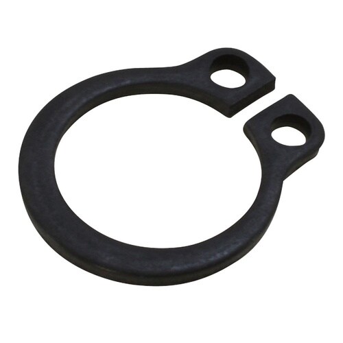 位置決めしたい所の軸に円周溝を設け、この溝に入れて軸方向の動きを止めます。着脱には専用工具(プライヤー)が必要ですが、作業は簡単です。呼び径は軸の外径です。材質はばね用鋼。軸上の位置決めに使用します。 |