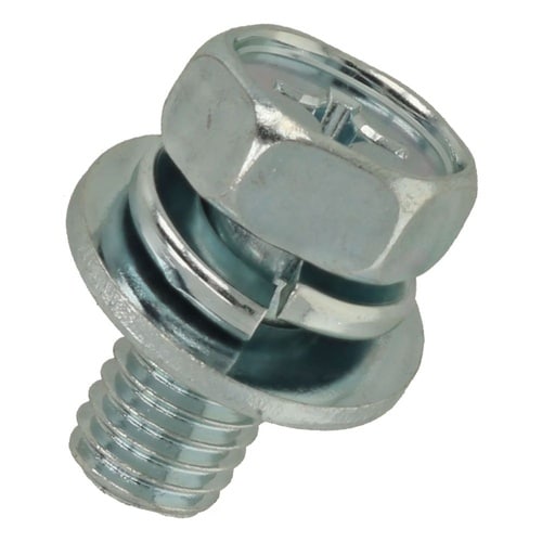 六角アプセットボルトにばね座金と平座金が組込まれており脱落しません。組込み式なので作業効率が向上します。締付け工具はボックスレンチ、メガネレンチ、十字ドライバーが適切です。