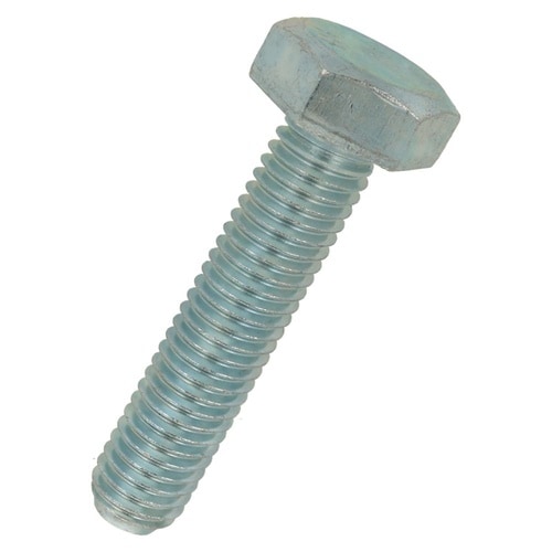 六角形状の頭部があり、胴の全体にねじが切ってあります。材質は鋼で耐食性向上のため、ユニクロめっき(薄青っぽい色合い)がしてあります。機械類の位置調整、締結用ねじです。生地に比べ耐食性があります。 |