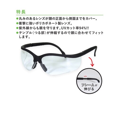 刈払作業・庭木の手入れ等で飛来物から眼を保護します丸みのあるレンズが顔の正面から側面までをカバーします衝撃に強いポリカボネード製レンズ紫外線から眼を守ります。 |