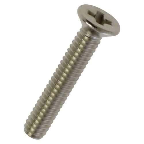 十字穴付きの皿頭小ねじです。部材に頭部を出さない為の座ぐり加工が必要です。材質は鋼で耐食性向上のため、ニッケルめっきがしてあります。ボルトに比べ小さな部材の一般的な締結に使用します。