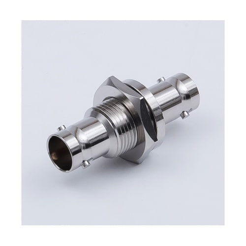 バルクヘッドタイプのBNC75Ω型中継用アダプタです。本体は黄銅にニッケルメッキ。取付可能なパネルの厚さは2.0ー5.5mm。ジャック−ジャック型です。 |