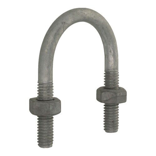 材質は鉄で、溶融亜鉛めっき。配管を構造物に固定するときに使用。組み合わせ部品はどぶめっき品を使用してください。