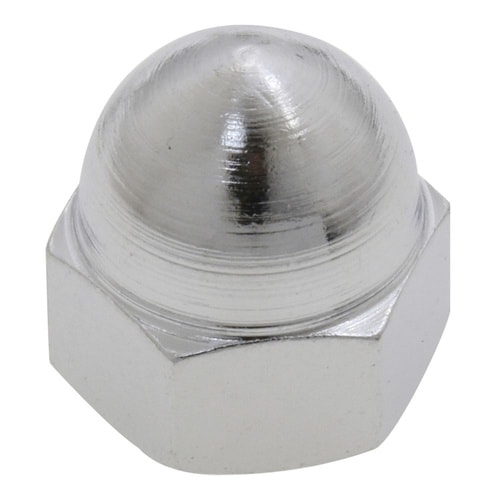 アメリカ規格(ユニファイ)の並目(UNC)ねじの袋ナットです。材質は鋼で耐食性向上のため、クロームめっき(白っぽく光沢のある)がしてあります。生地に比べ耐食性があります。